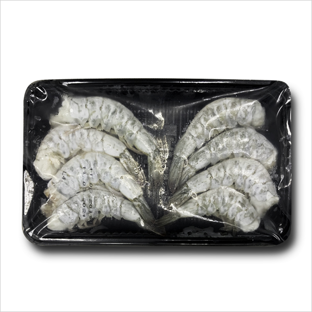 Trọng lượng: 10-11 con/200 gram/khay Tôm hữu cơ (không chất kháng sinh) đã qua sơ chế cắt bỏ phần đầu tôm, được đóng gói đông lạnh theo quy cách IQF